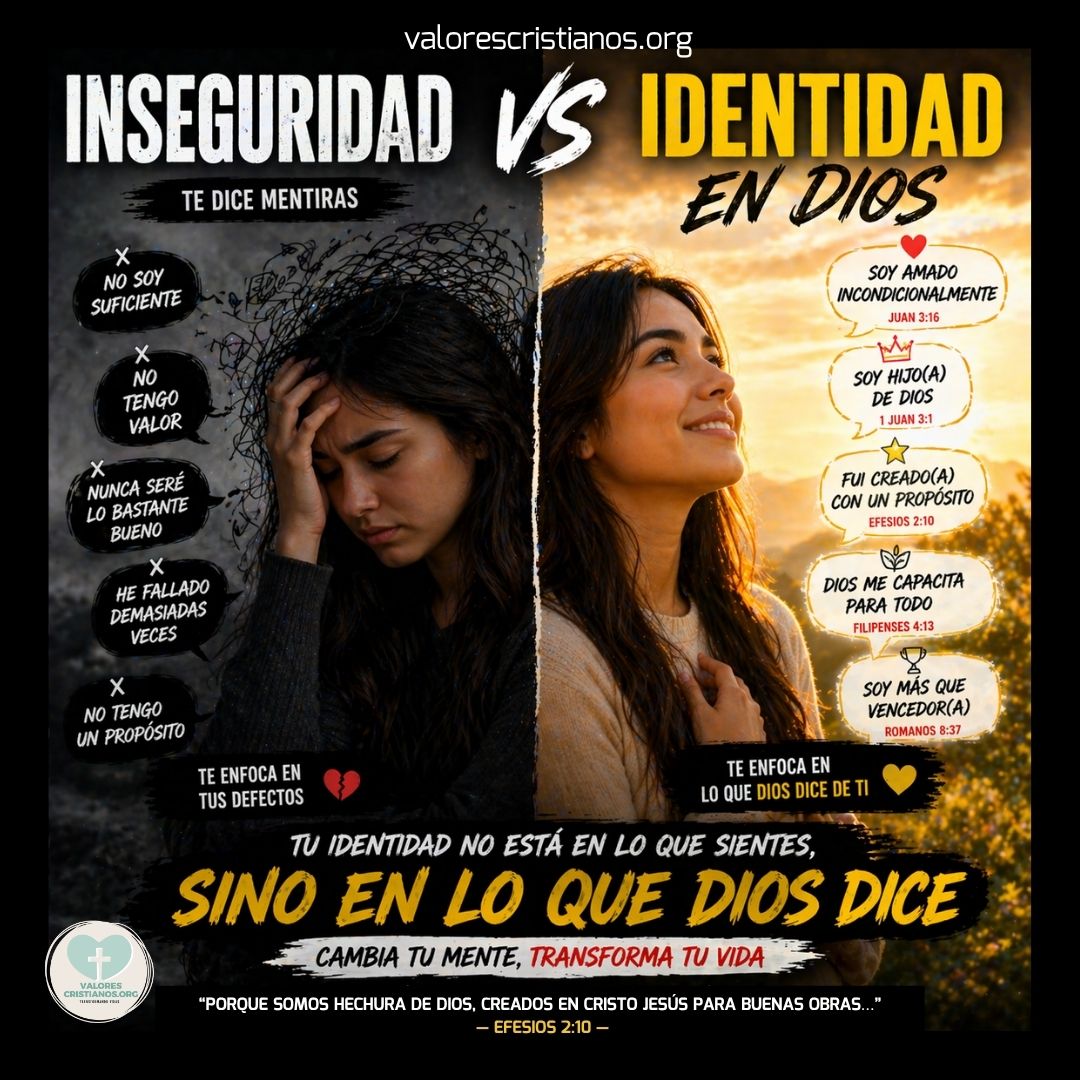 Señor Jesús, hoy reconozco que he construido mi identidad en lugares equivocados. He creído más en mis emociones que en Tu Palabra. Perdóname. Hoy decido anclar mi vida en lo que Tú dices de mí: soy Tu hechura, soy amado, soy llamado y tengo propósito. Transforma mi mente, renueva mi corazón y ayúdame a verme como Tú me ves. Que nunca más el miedo defina quién soy. En el poderoso nombre de Jesús, amén.