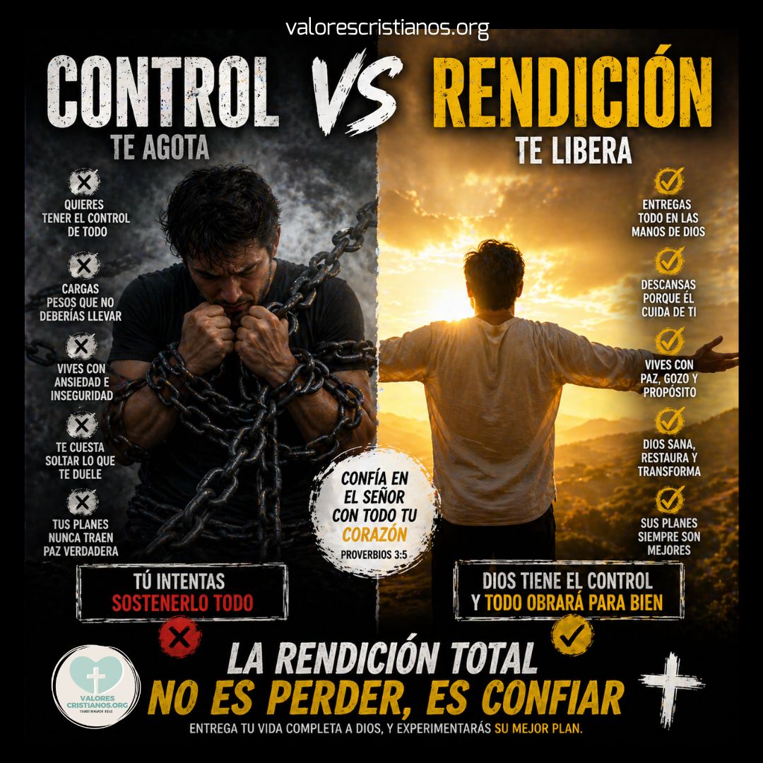 🎯 Tarea del día: Identifica hoy una cosa concreta que aún no has soltado. Escríbela en un papel. Luego ora y di: «Espíritu Santo, hoy me rindo. No quiero controlar más. Confío en Ti completamente.» Y suéltala. Aunque duela. Aunque tiemble tu mano. Suéltala.